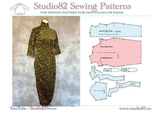 Digital Sewing Pattern for Qipao with 3/4 Bell Sleeves
