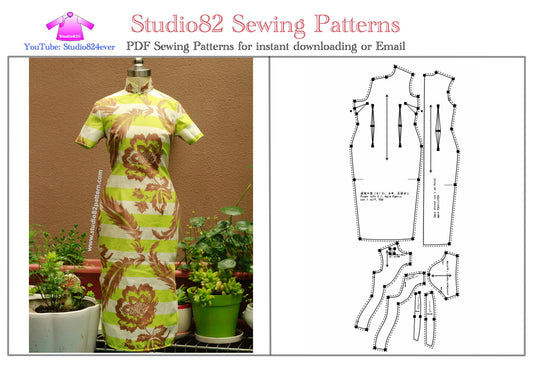 Digital Sewing Pattern:Cheongsam (Qipao) Short-Sleeved Continuous Shoulder Sleeve Sewing Pattern