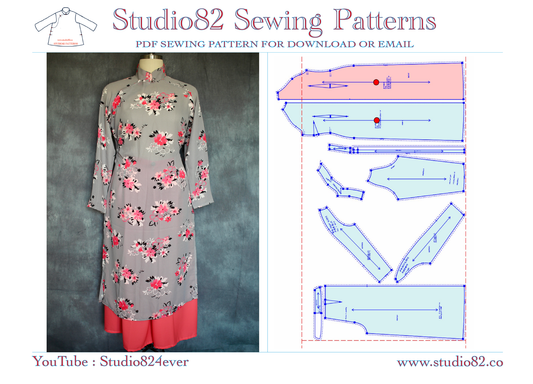 Raglan-Sleeve áo dài with diagonal placket and zipper PDF sewing Pattern