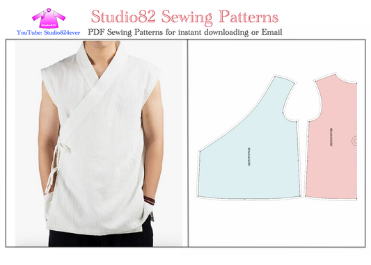 PDF sewing pattern of Shaolin Temple Style of Mens Sleeveless Wrap Vest