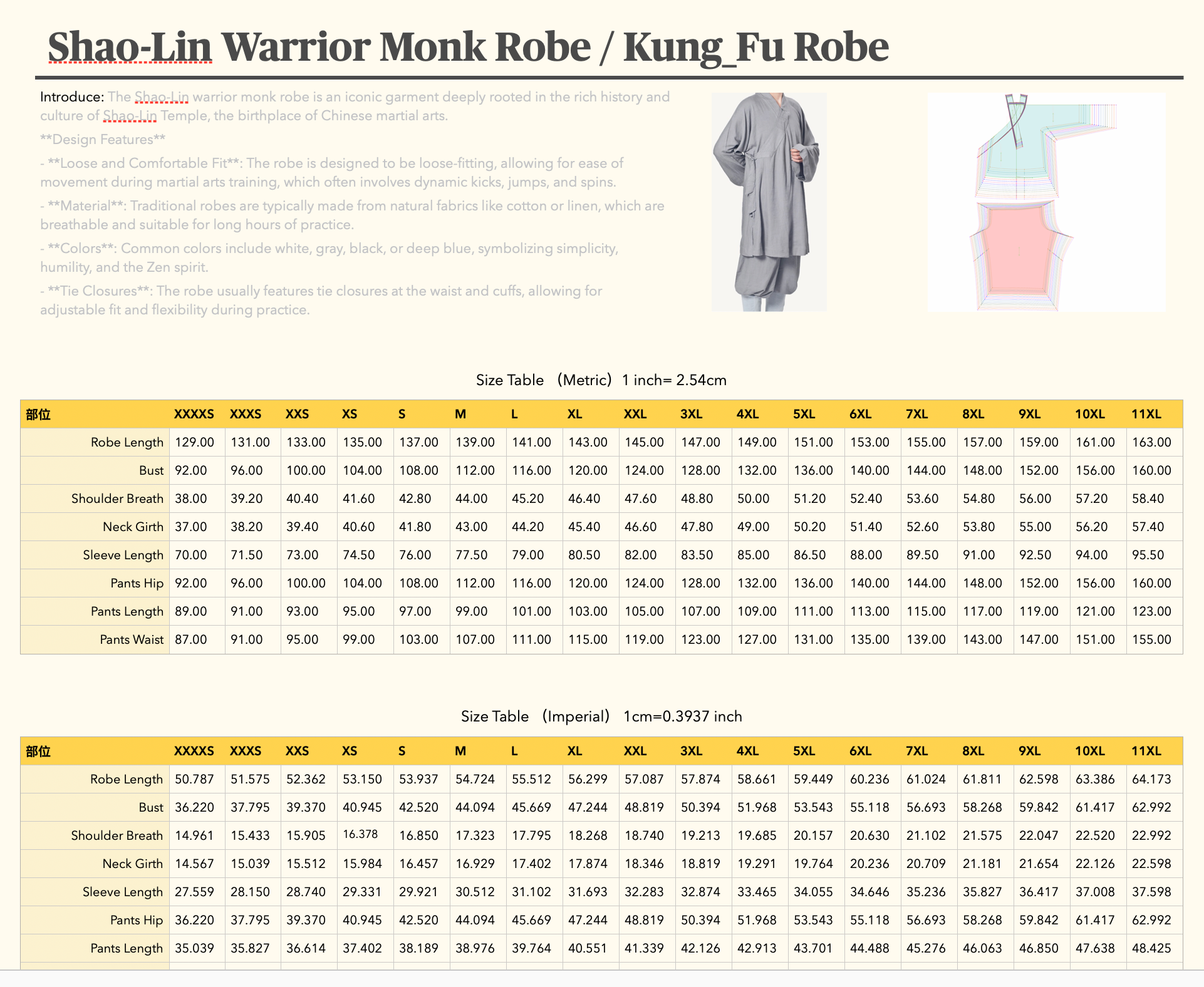 - **Zen and Martial Arts Unity**: The design of the robe embodies the Shaolin Temple philosophy of "Zen and martial arts as one," blending practicality with the simplicity and tranquility of Buddhist teachings.